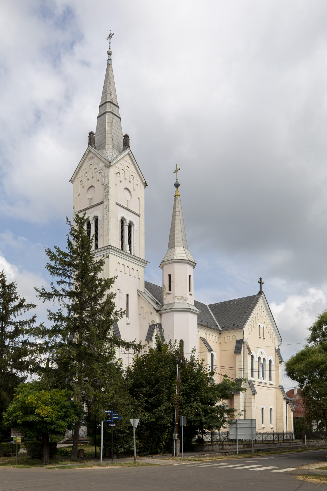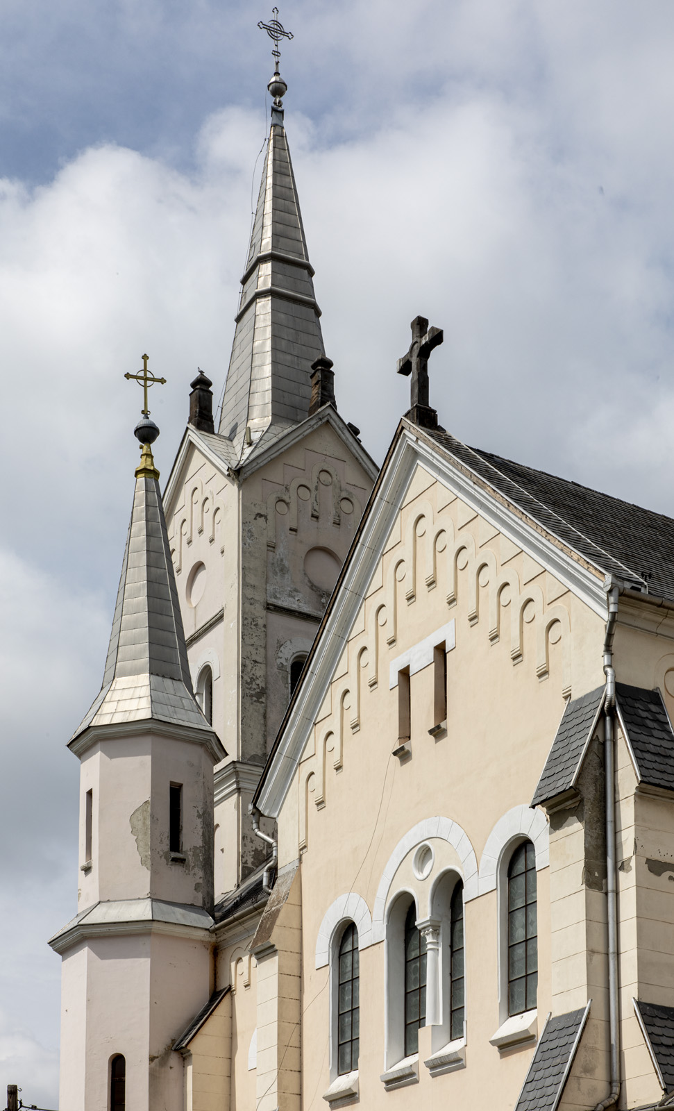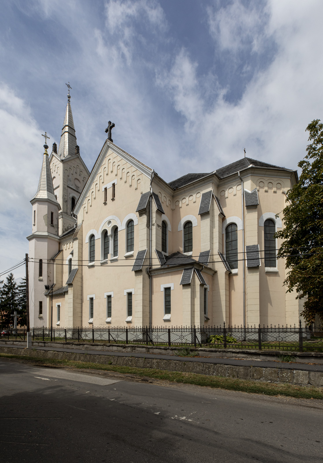 Mezőkeresztes, Magyarok Nagyasszonya római katolikus templom, 1898–1899. Az előrelépő toronytestet két kisebb lépcsőtorony fogja közre. A nagyradaihoz hasonlóan a középkori stílusok ezen az épületen is keverednek, a félköríves záródású ablakok azonban erőteljesebbek a neoromán stíluselemek.