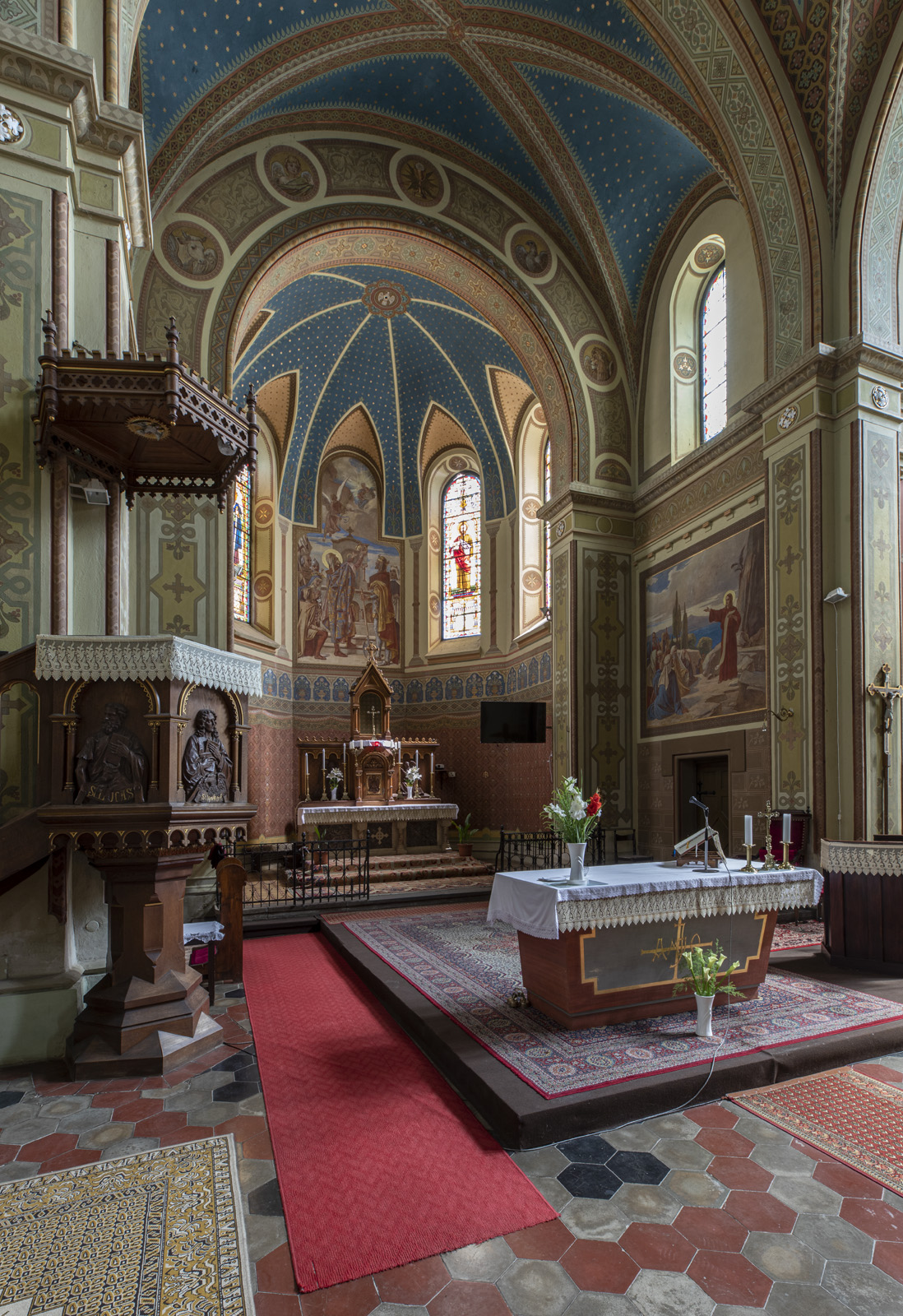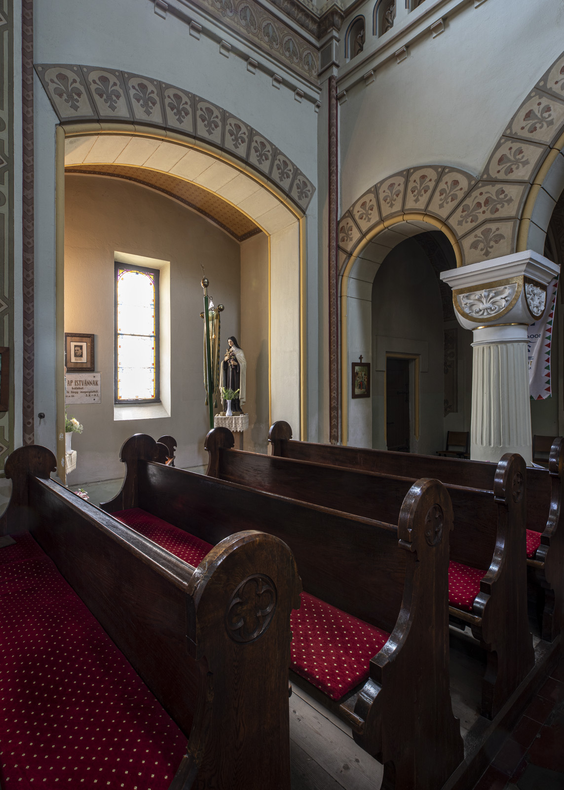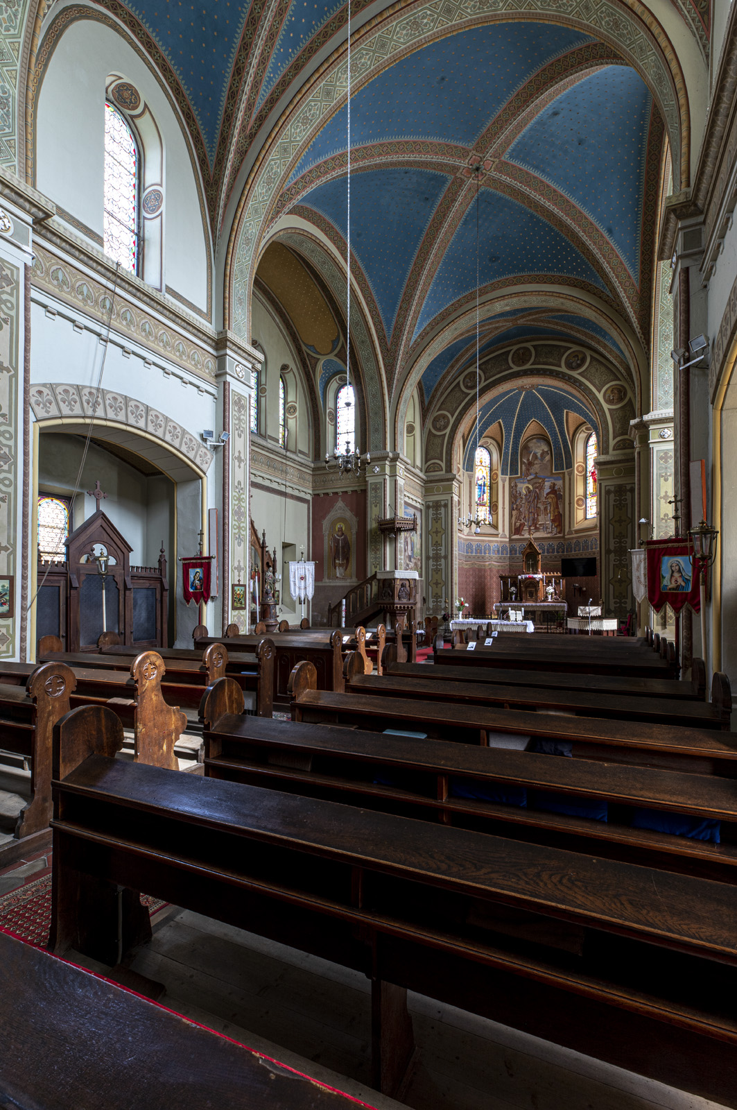 Mezőkeresztes, Magyarok Nagyasszonya római katolikus templom, 1898–1899. Az előrelépő toronytestet két kisebb lépcsőtorony fogja közre. A nagyradaihoz hasonlóan a középkori stílusok ezen az épületen is keverednek, a félköríves záródású ablakok azonban erőteljesebbek a neoromán stíluselemek.